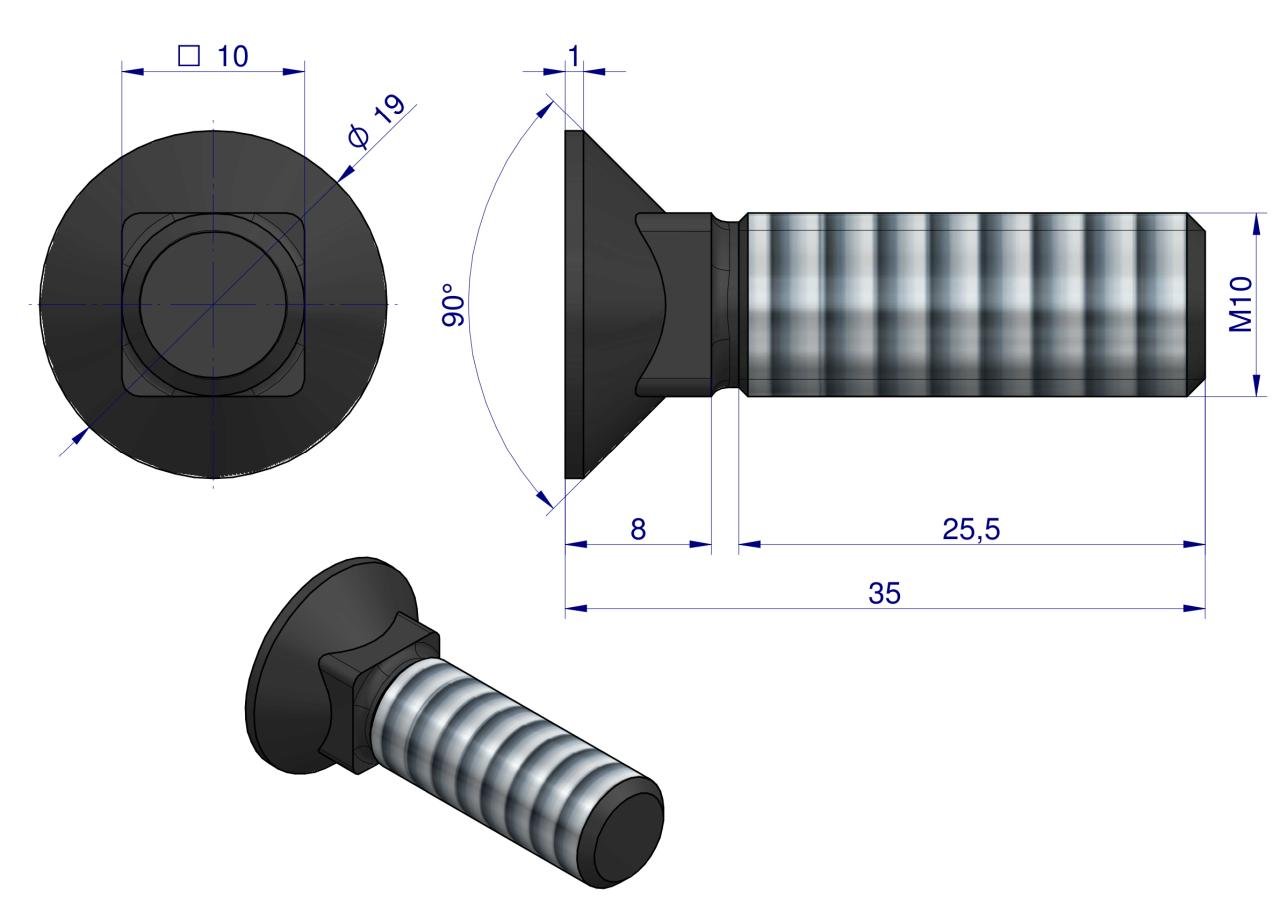 Śruba kpl. płużna podsadzana D 608 M10x35 mm kl.10.9 Waryński ( sprzedawane po 25 ) [W-608101035]