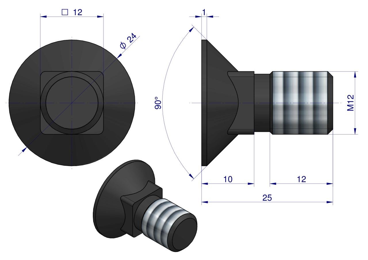 Śruba kpl. płużna podsadzana D 608 M12x25 mm kl.10.9 Waryński ( sprzedawane po 25 ) [W-608101225]
