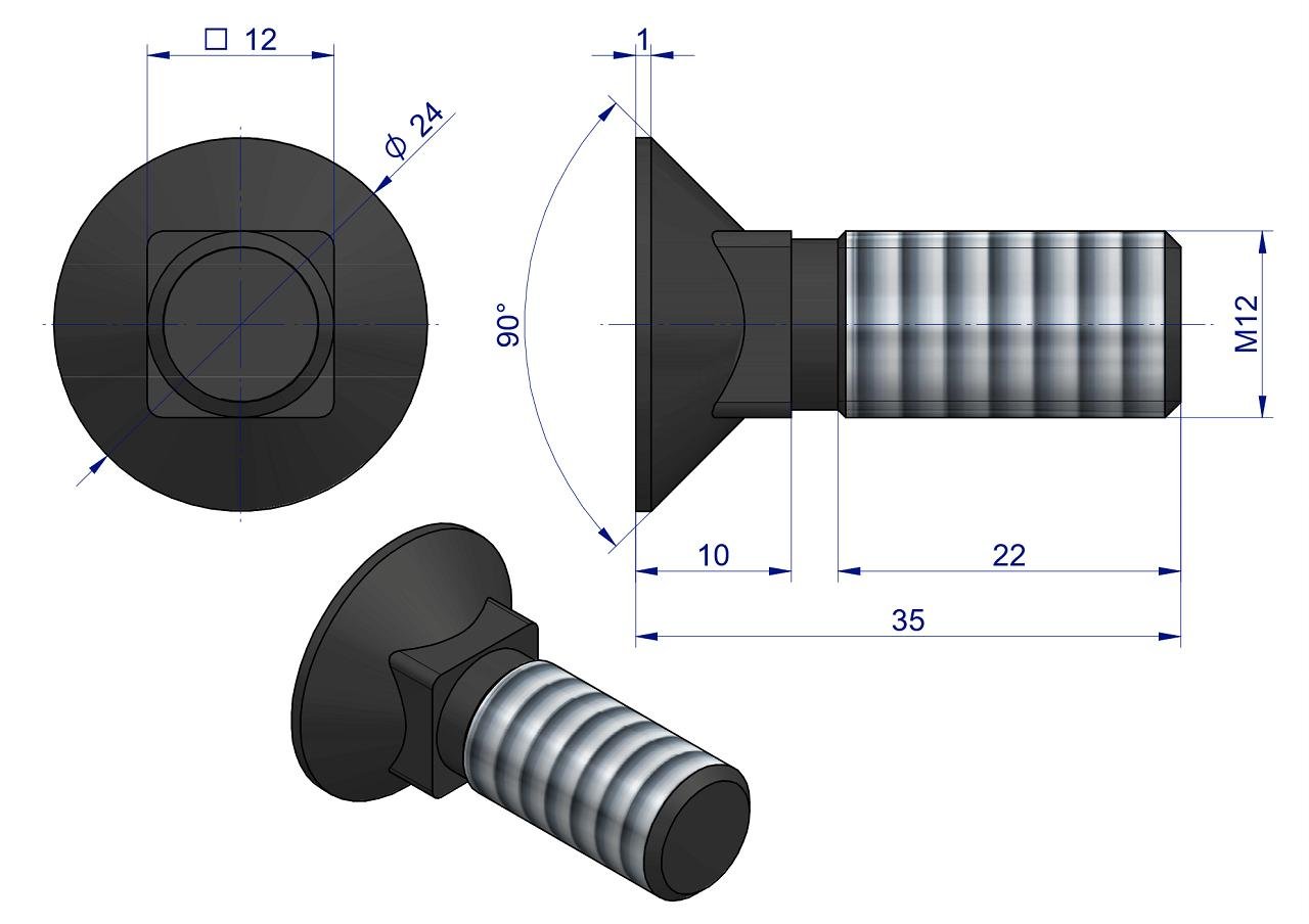 Śruba kpl. płużna podsadzana D 608 M12x35 mm kl.10.9 Waryński ( sprzedawane po 25 ) [W-608101235]