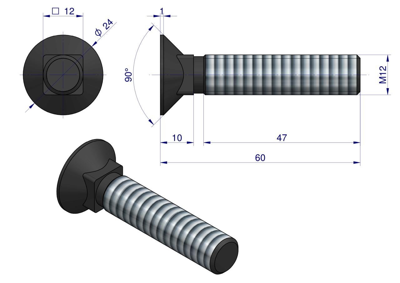Śruba kpl. płużna podsadzana D 608 M12x60 mm kl.10.9 Waryński ( sprzedawane po 25 ) [W-608101260]