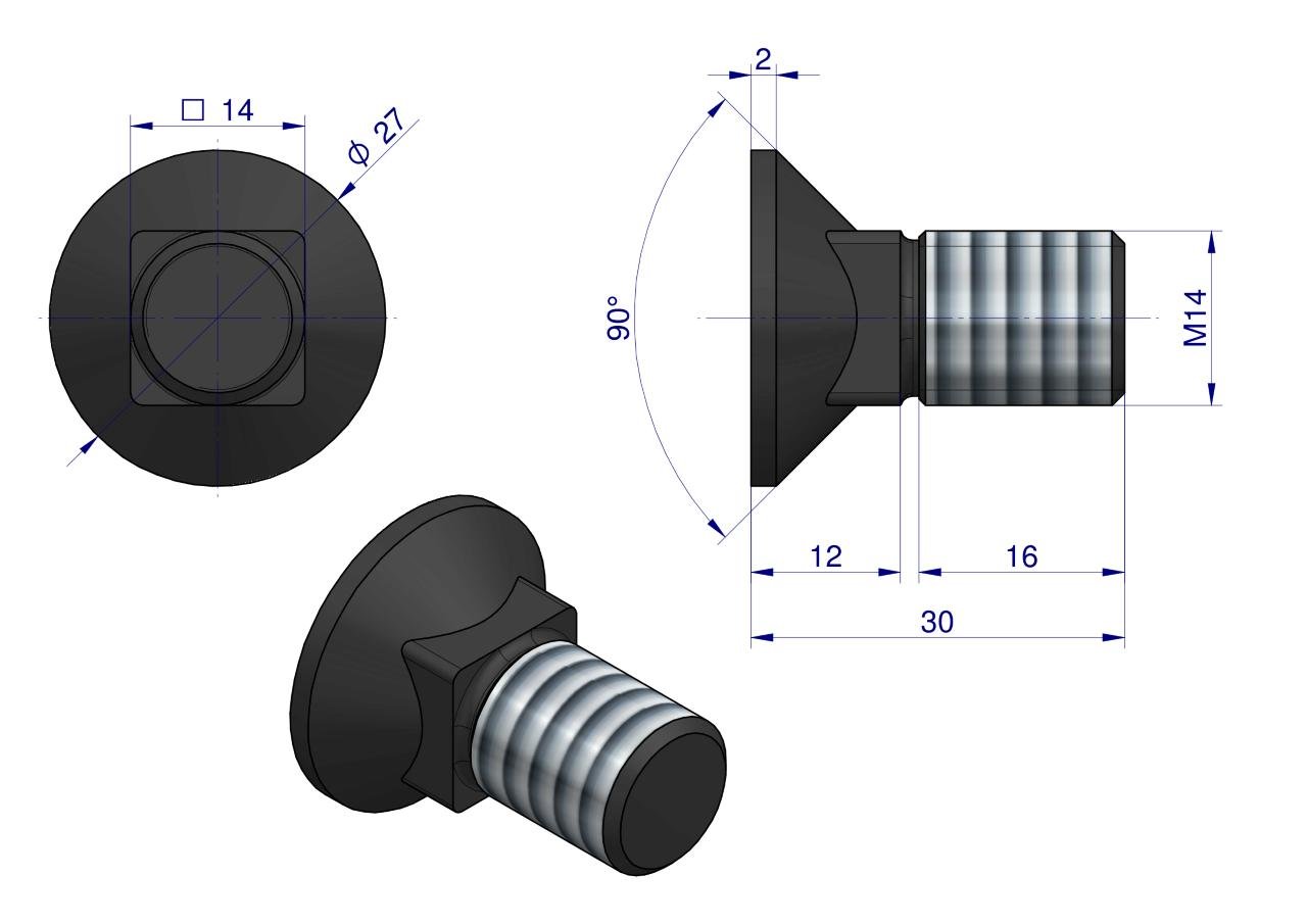 Śruba kpl. płużna podsadzana D 608 M14x30 mm kl.10.9 Waryński ( sprzedawane po 10 ) [W-608101430]