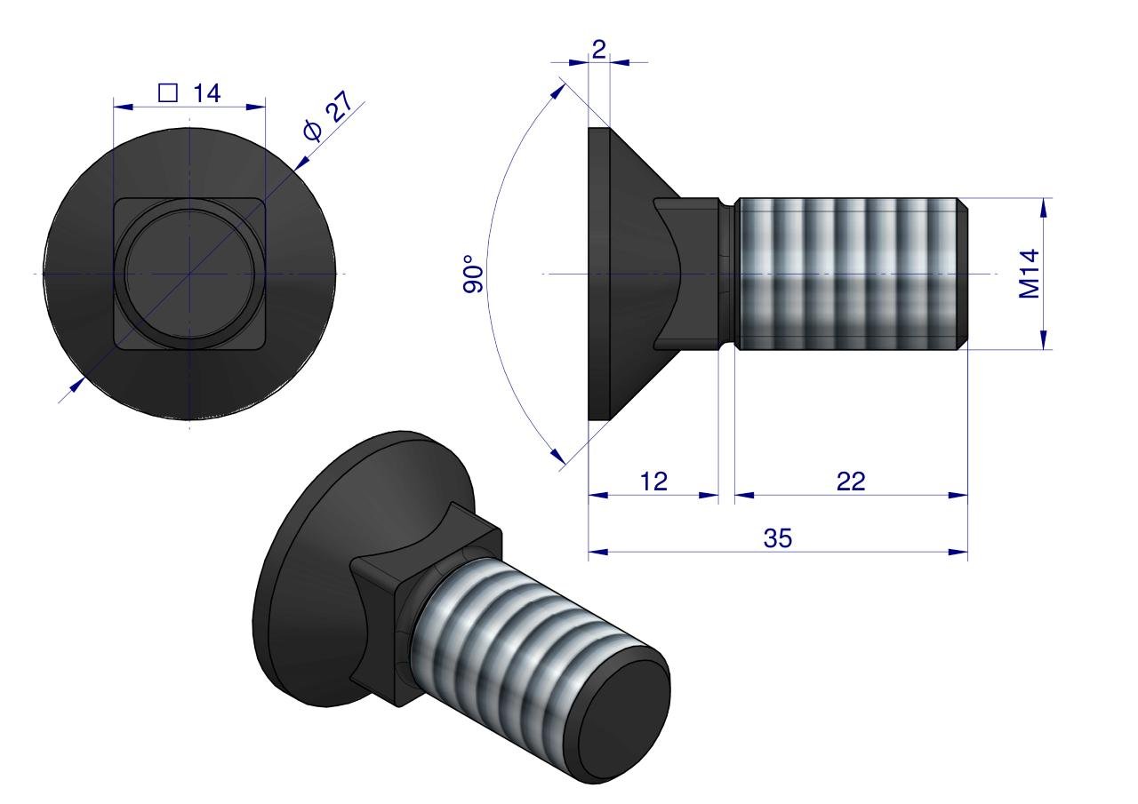 Śruba kpl. płużna podsadzana D 608 M14x35 mm kl.10.9 Waryński ( sprzedawane po 10 ) [W-608101435]