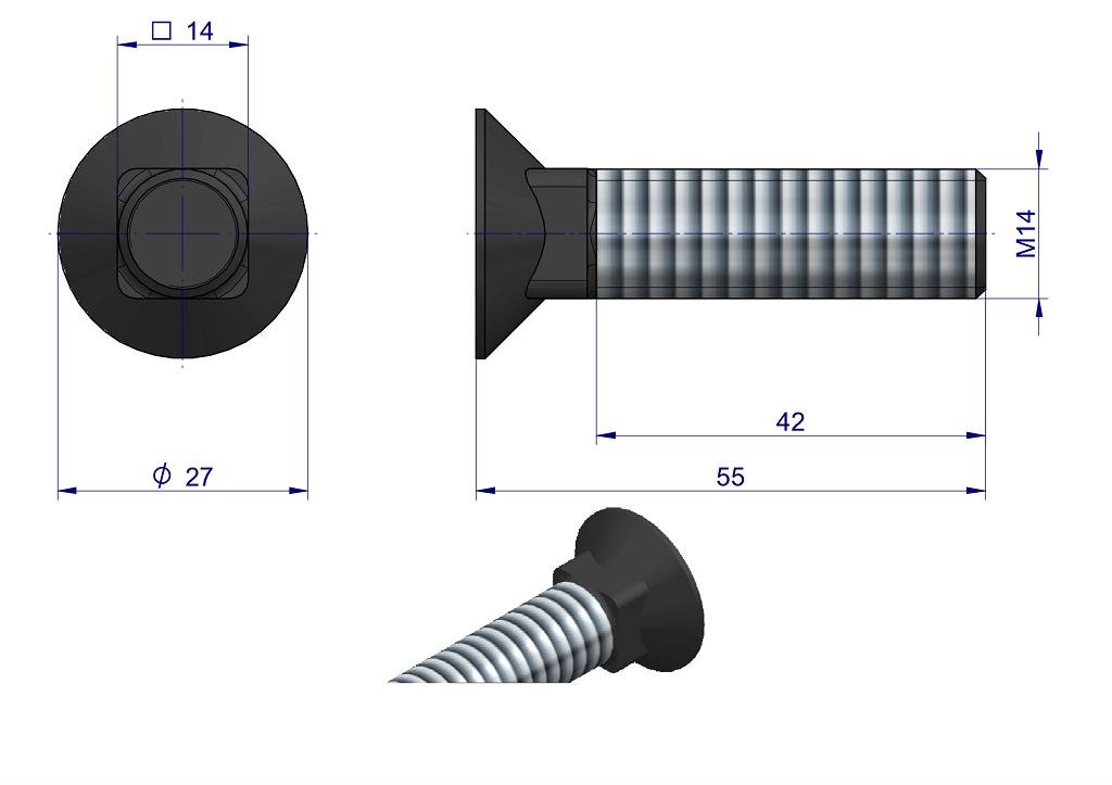 Śruba kpl. płużna podsadzana D 608 M14x55 mm kl.10.9 Waryński ( sprzedawane po 10 ) [W-608101455]