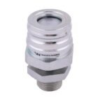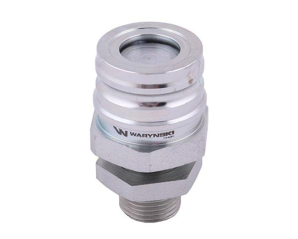 Szybkozłącze hydrauliczne hamulcowe wtyczka M18x1.5 gwint zewnętrzny (grodziowy z przeciwnakrętką) Waryński. Zaprojektowane są zgodnie z wymogami wymiarowymi i jakościowymi, które określają szczegółowo charakterystykę pracy i wymiary. Szybkozłącza hamulcowe gwarantują szczelne połączenie w układzie hydraulicznym.