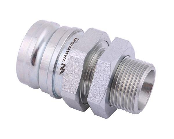 Szybkozłącze hydrauliczne hamulcowe wtyczka M22x1.5 gwint zewnętrzny (grodziowy z przeciwnakrętką) Waryński. Zaprojektowane są zgodnie z wymogami wymiarowymi i jakościowymi, które określają szczegółowo charakterystykę pracy i wymiary. Szybkozłącza hamulcowe gwarantują szczelne połączenie w układzie hydraulicznym.