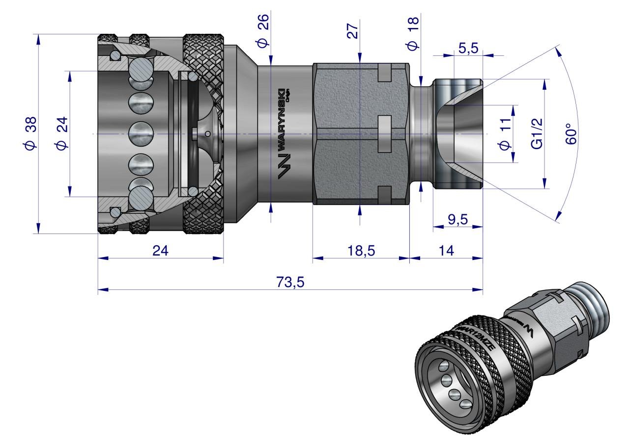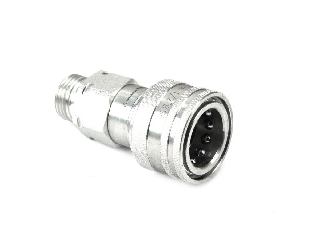 Szybkozłącze hydrauliczne gniazdo G1/2″BSP gwint zewnętrzny EURO ISO 7241-A z eliminatorem ciśnienia Waryński. Eliminator ciśnienia umożliwia połączenie hydrauliki bez potrzeby stosowania nadmiernej siły, co zapewnia szybki i łatwy proces połączenia w każdej sytuacji (statyczne ciśnienie pomiędzy dwoma systemami hydraulicznymi jest rozprężane). Jest to idealne rozwiązanie łączenia hydrauliki o bardzo szerokim spektrum zastosowań. Szybkozłącza zaprojektowane są zgodnie z wymogami wymiarowymi i jakościowymi normy ISO 7241 Seria A, która określa szczegółowo charakterystykę i wymiary, aby umożliwić kompatybilność szybkozłączy produkowanych przez różnych producentów zgodnie z tym standardem. Zamienne z szybkozłączami ISO-A innych producentów takich jak: Parker, Faster, Stucchi, DNP, Tema i innych.