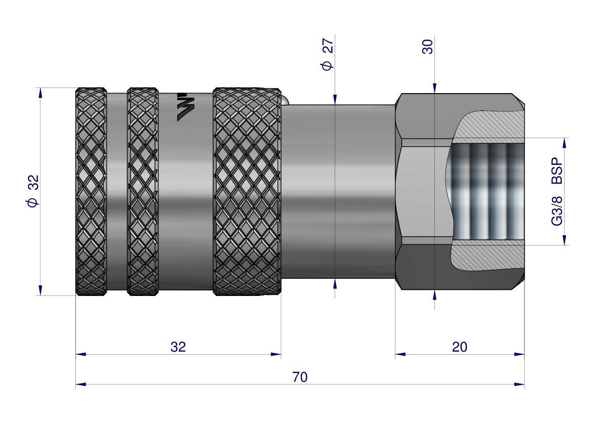 Szybkozłącze hydrauliczne suchoodcinające Waryński – gniazdo ISO-16028. Posiadają trzpień zabezpieczający przed przypadkowym rozłączeniem. Szybkozłącza zaprojektowane są zgodnie z wymogami wymiarowymi i jakościowymi normy ISO 16028 Seria F, która określa szczegółowo charakterystykę i wymiary, aby umożliwić kompatybilność szybkozłączy produkowanych przez różnych producentów zgodnie z tym standardem. Zamienne z szybkozłączami ISO-F innych producentów takich jak: Parker, Faster, Stucchi, DNP, Tema i innych.