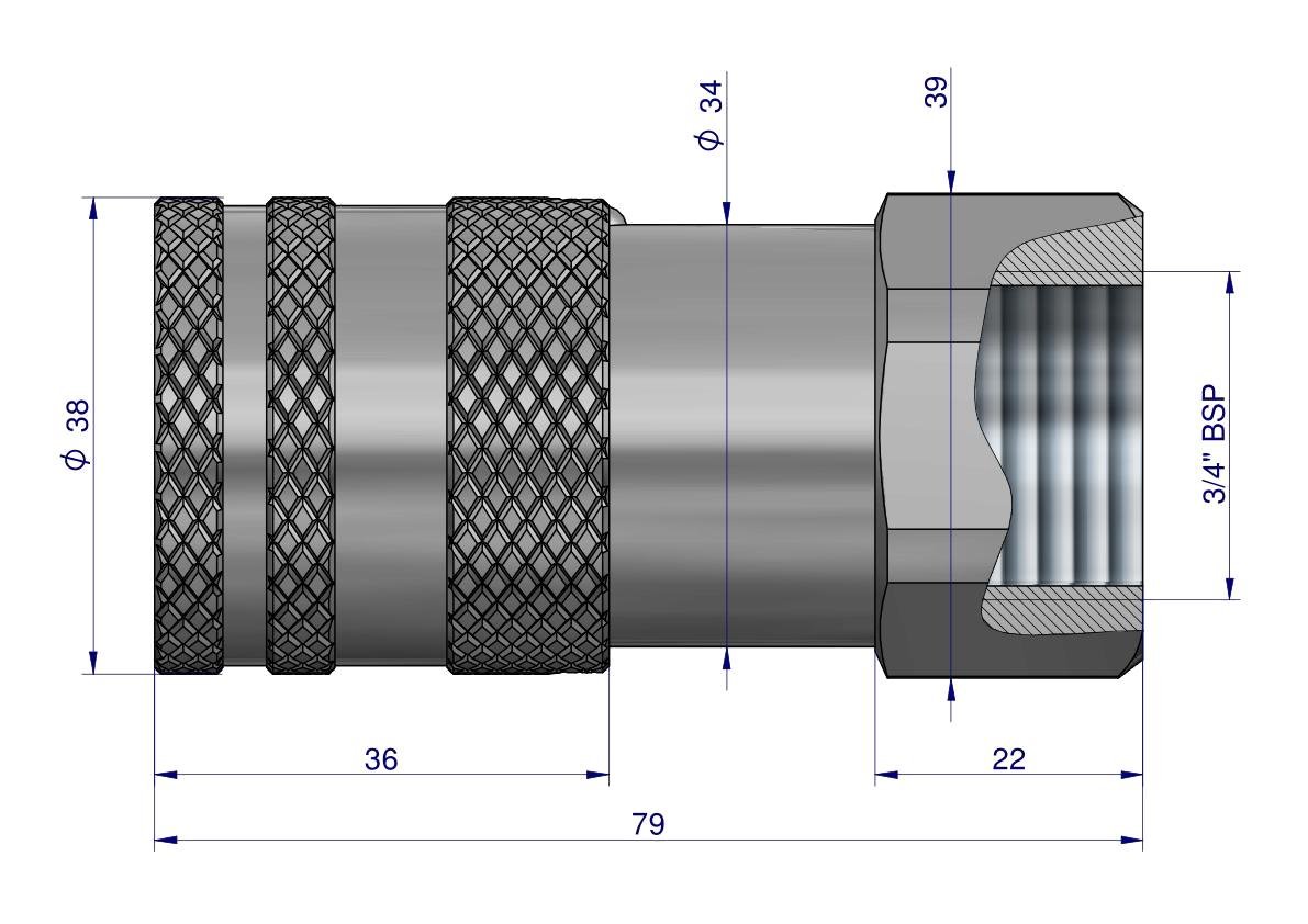 Szybkozłącze hydrauliczne suchoodcinające Waryński – gniazdo ISO-16028. Posiadają trzpień zabezpieczający przed przypadkowym rozłączeniem. Szybkozłącza zaprojektowane są zgodnie z wymogami wymiarowymi i jakościowymi normy ISO 16028 Seria F, która określa szczegółowo charakterystykę i wymiary, aby umożliwić kompatybilność szybkozłączy produkowanych przez różnych producentów zgodnie z tym standardem. Zamienne z szybkozłączami ISO-F innych producentów takich jak: Parker, Faster, Stucchi, DNP, Tema i innych.