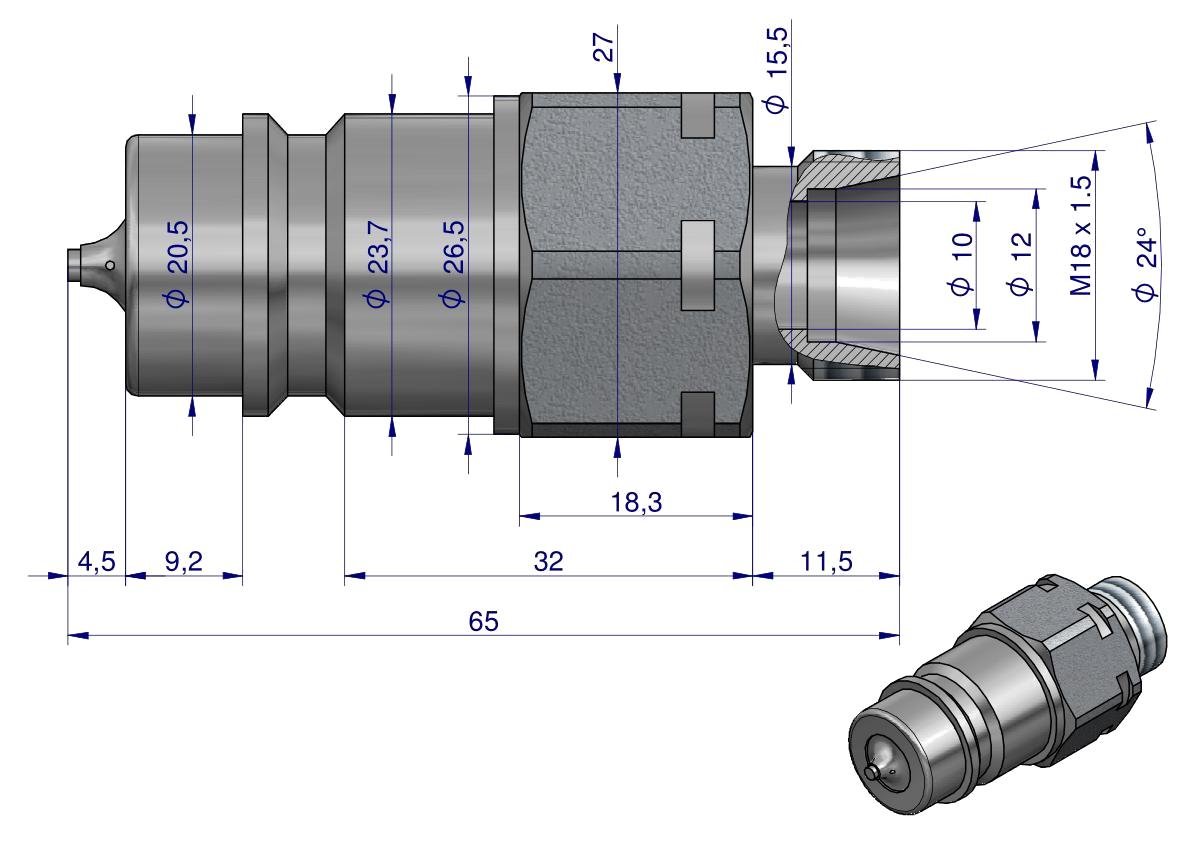 Szybkozłącze hydrauliczne wtyczka z eliminatorem ciśnienia M18x1.5 gwint zew. EURO (9100818W) (ISO 7241-A) Waryński. Eliminator ciśnienia umożliwia połączenie hydrauliki bez potrzeby stosowania nadmiernej siły, co zapewnia szybki i łatwy proces połączenia w każdej sytuacji (statyczne ciśnienie pomiędzy dwoma systemami hydraulicznymi jest rozprężane). Jest to idealne rozwiązanie łączenia hydrauliki o bardzo szerokim spektrum zastosowań. Szybkozłącza zaprojektowane są zgodnie z wymogami wymiarowymi i jakościowymi normy ISO 7241 Seria A, która określa szczegółowo charakterystykę i wymiary, aby umożliwić kompatybilność szybkozłączy produkowanych przez różnych producentów zgodnie z tym standardem. Zamienne z szybkozłączami ISO-A innych producentów takich jak: Parker, Faster, Stucchi, DNP, Tema i innych.