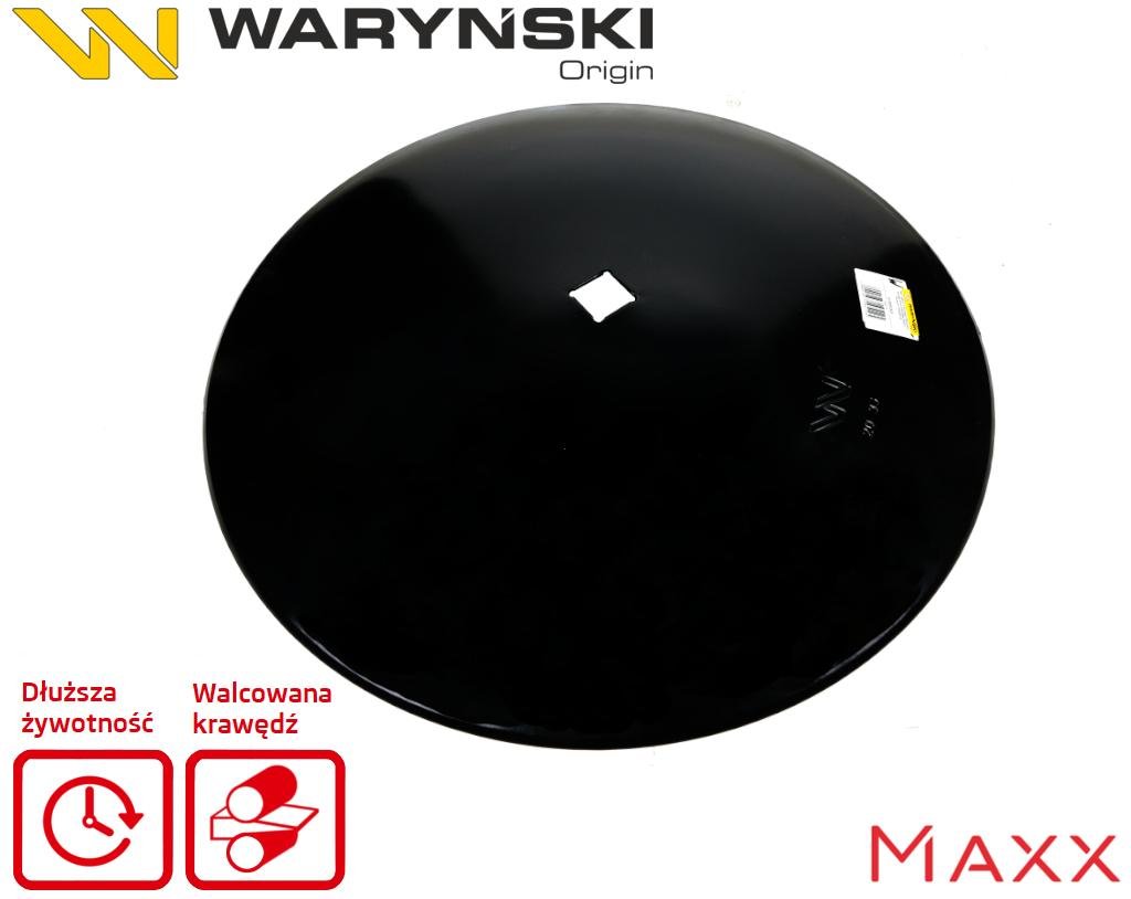 Nowe Talerze Waryński MAXX. Jakość tych produktów została mocno podniesiona: Do produkcji został wykorzystany nowy gatunek stali, który ma wyższa zawartość węgla. Dzięki temu udało się podwyższyć twardość z 45-48HRC do 52-55HRC. Nowe talerze wyróżniają się również zmienioną technologią ostrzenia. Walcowana krawędź ( nie szlifowana ) zwiększa twardość i wytrzymałość ostrza. Rozwiązanie to stosuje tylko kilku najlepszych producentów na świecie. Dzięki czemu klienci otrzymują talerz o ponad 20% dłuższej żywotności oraz o wiele bardziej wytrzymały na uszkodzenia.