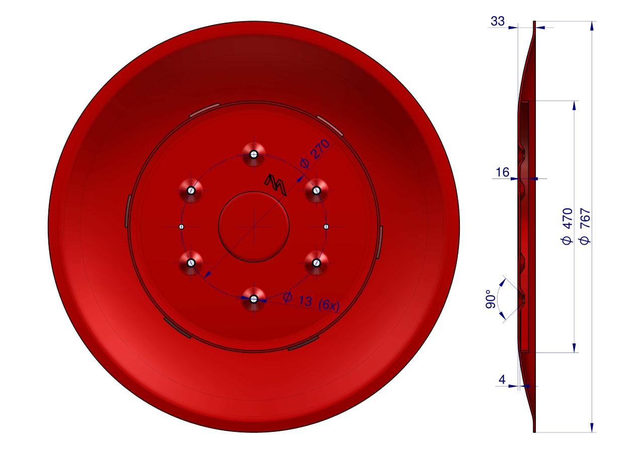 Zwiększona grubość talerza – większa wytrzymałość. żywotność,
