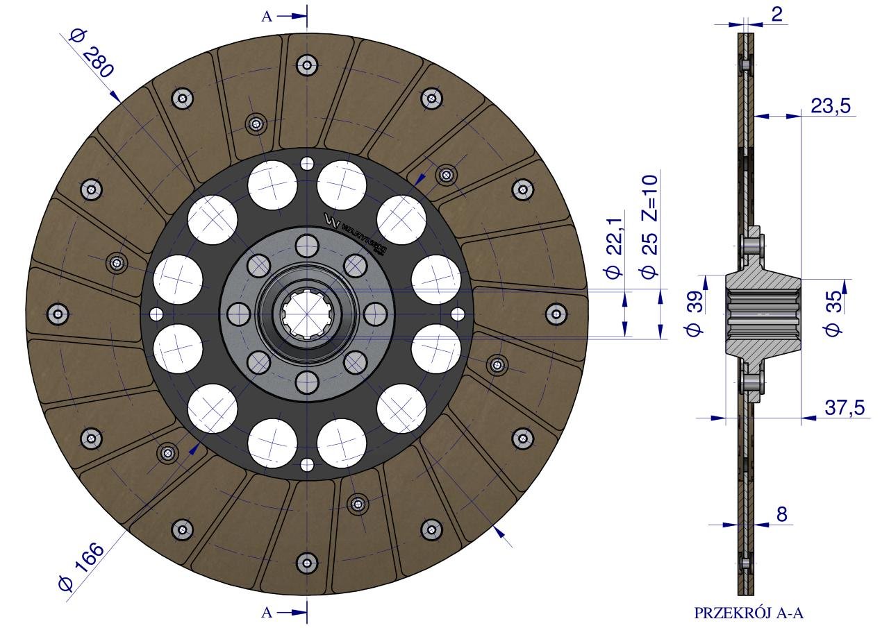 Tarcza sprzęgłowa w marce Waryński to produkt najwyższej jakości. Tarcza Sprzęgłowa jest jednym z najważniejszych elementów układu przeniesienia napędu. Odpowiada za przekazanie momentu obrotowego z koła zamachowego na wałek sprzęgłowy skrzyni biegów. Jednym z zadań tarczy sprzęgła jest również redukcja i tłumienie drgań przenoszonych napędów.