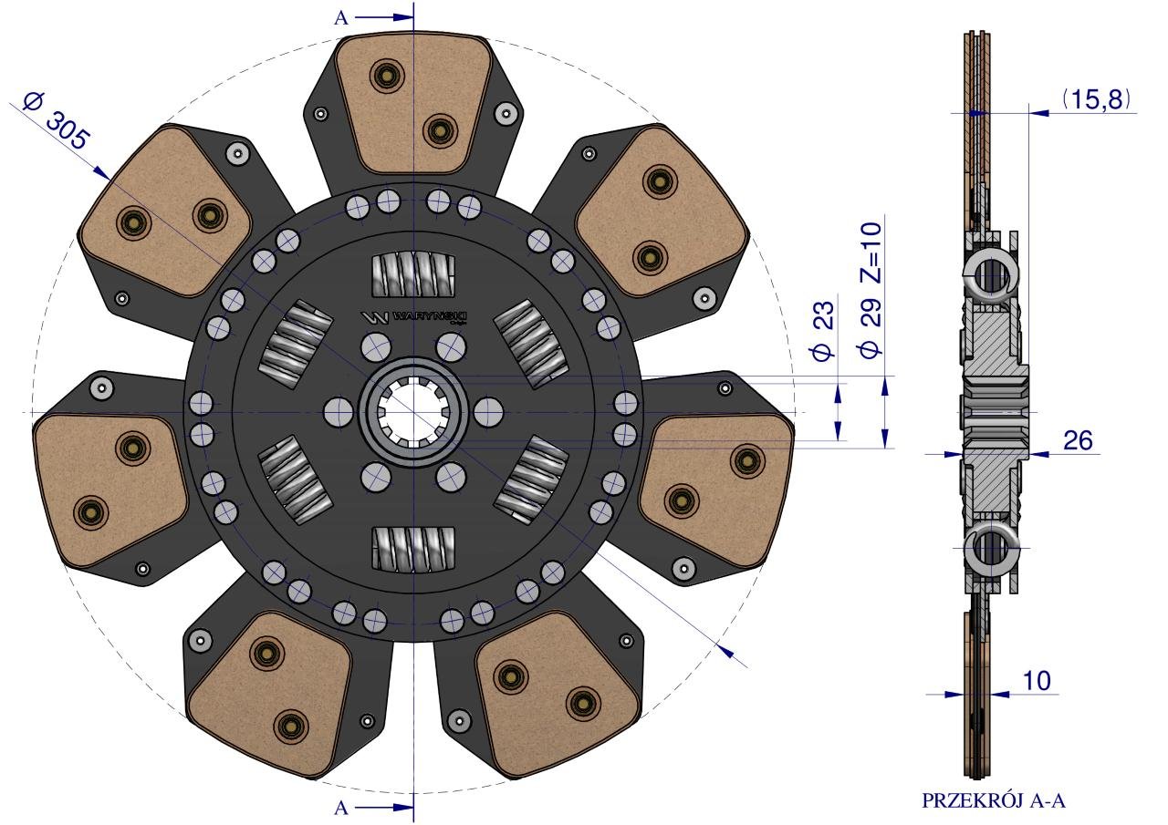 Tarcza sprzęgłowa w marce Waryński to produkt najwyższej jakości. Tarcza Sprzęgłowa jest jednym z najważniejszych elementów układu przeniesienia napędu. Odpowiada za przekazanie momentu obrotowego z koła zamachowego na wałek sprzęgłowy skrzyni biegów. Jednym z zadań tarczy sprzęgła jest również redukcja i tłumienie drgań przenoszonych napędów.