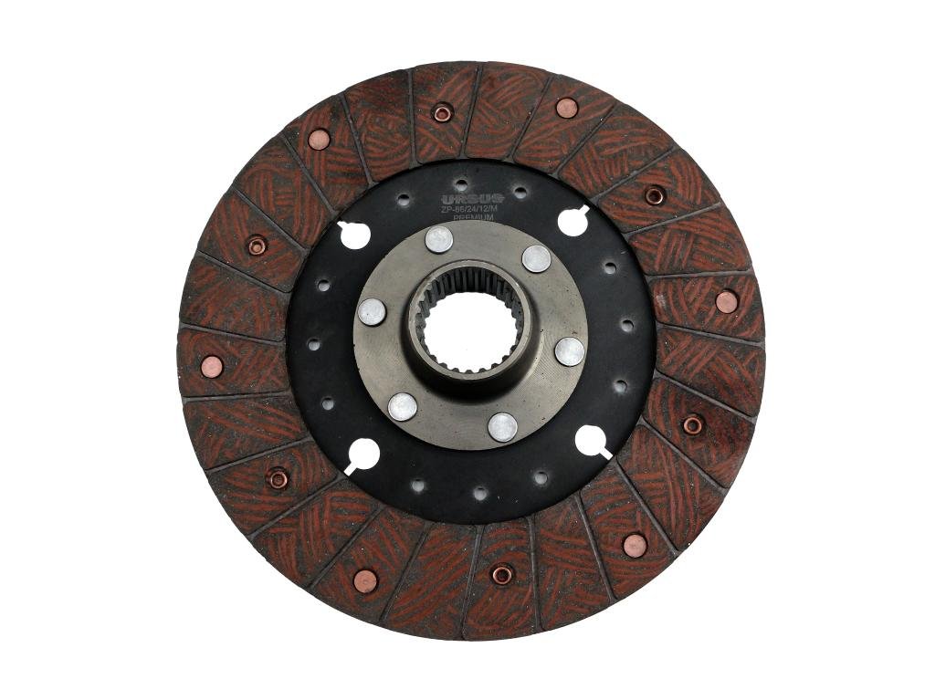 Tarcza sprzęgłowa w marce Ursus to produkt najwyższej jakości. Tarcza Sprzęgłowa jest jednym z najważniejszych elementów układu przeniesienia napędu. Odpowiada za przekazanie momentu obrotowego z koła zamachowego na wałek sprzęgłowy skrzyni biegów. Jednym z zadań tarczy sprzęgła jest również redukcja i tłumienie drgań przenoszonych obciążeń. Tarcza sprzęgłowa premium wyróżnia się dłuższą żywotnością zwiększoną o 30%, posiada zwiększoną liczbę nitów piasty, zostały również zmienione nity okładziny z aluminiowych na miedziane. Okładzina posiada więcej włókien, które wydłużają jej żywotność. Każdy produkt posiada 5 letnią żelazną gwarancję.