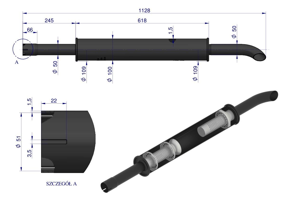 Tłumik 1128mm 3029104M1 4.8kg MF3 C-3603P ORYGINAŁ URSUS