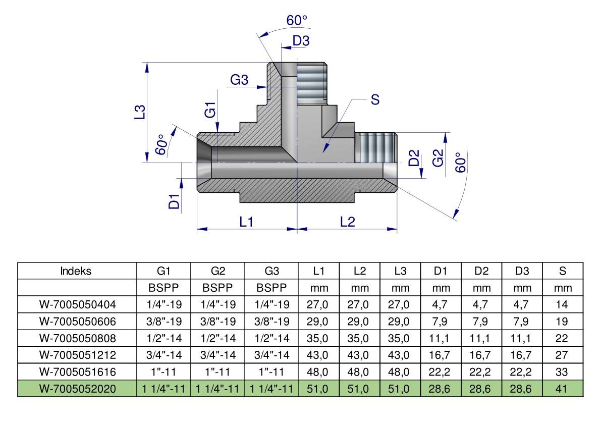 Trójnik hydrauliczny calowy BBB 1 1/4″ BSP (XT) Waryński. Elementy złączne zostały zaprojektowane i wykonane zgodnie z obowiązującymi normami, które szczegółowo opisują wymagania jakościowe i wymiarowe. Są kompatybilne z elementami złącznymi innych renomowach producentów hydrauliki siłowej.