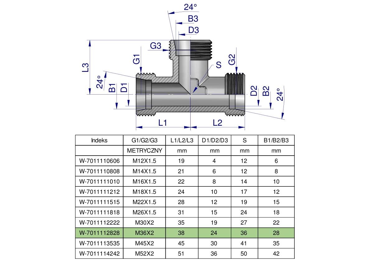 Trójnik hydrauliczny metryczny BBB M36x2 28L (XT) Waryński [W-7011112828]