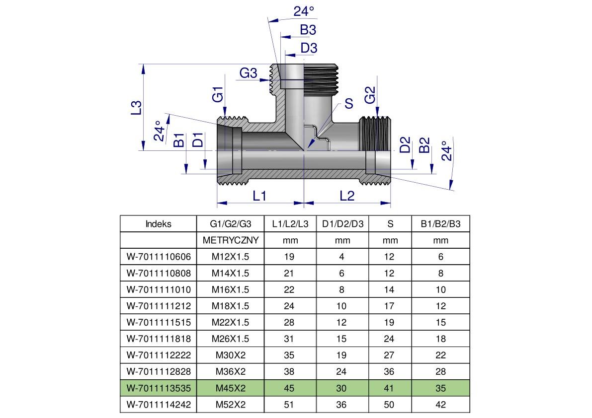 Trójnik hydrauliczny metryczny BBB M45x2 35L (XT) Waryński [W-7011113535]
