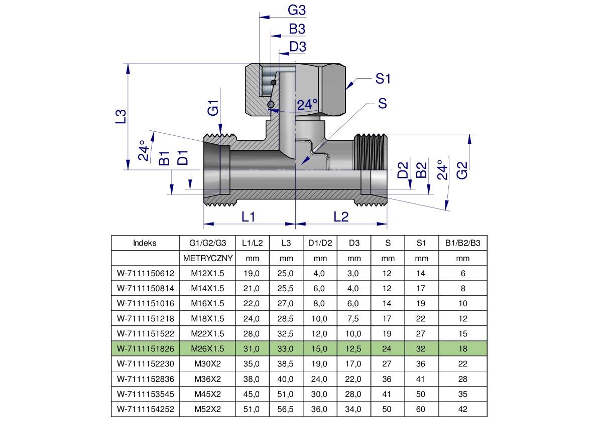 Trójnik hydrauliczny symetryczny metryczny BAB M26x1.5 18L (XEVT) Waryński [W-7111151826]