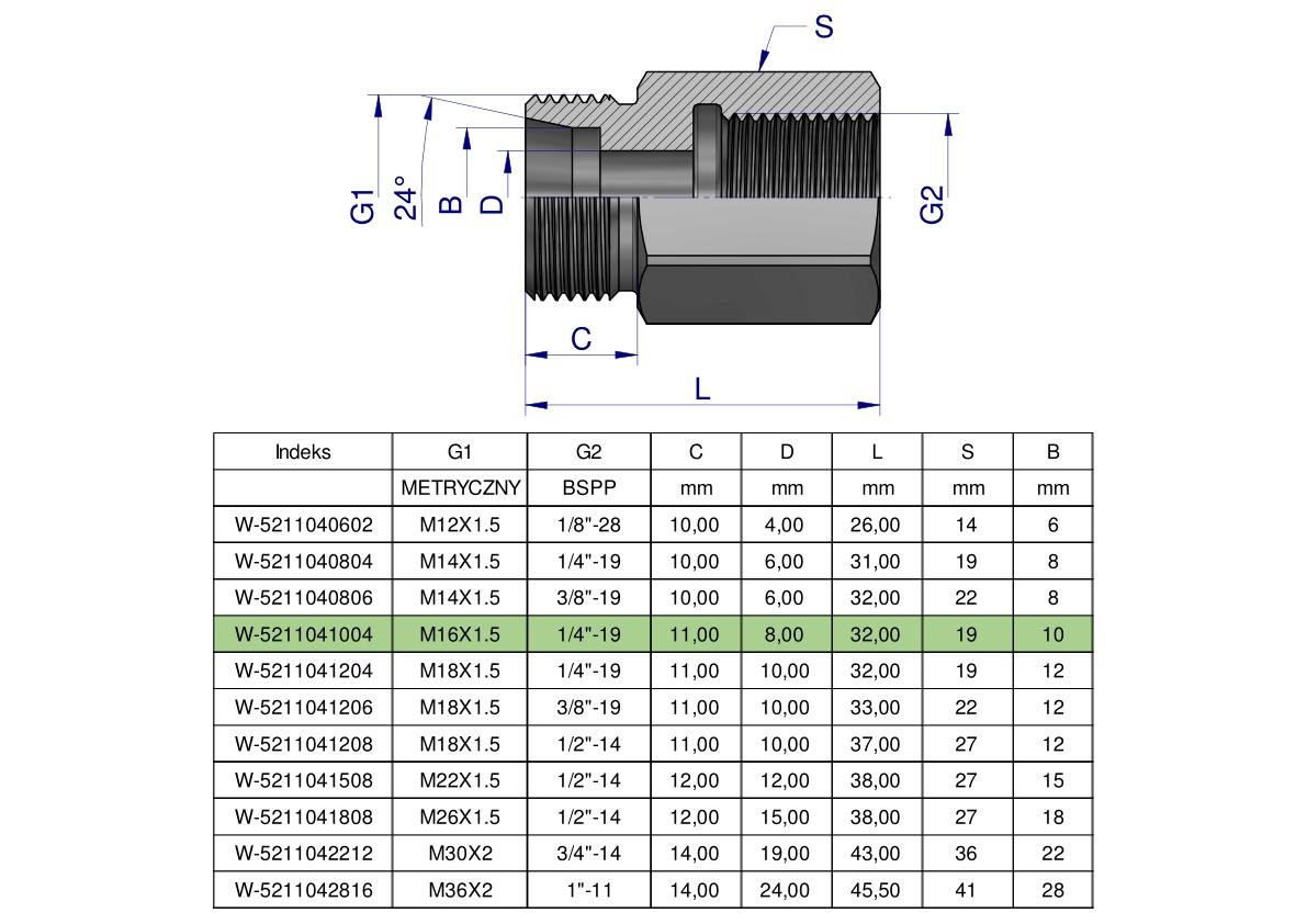 Tulejka różnicowa hydrauliczna AB M16x1.5 10L GZ x 1/4″ BSP GW Waryński ( sprzedawane po 2 ) [W-5211041004]