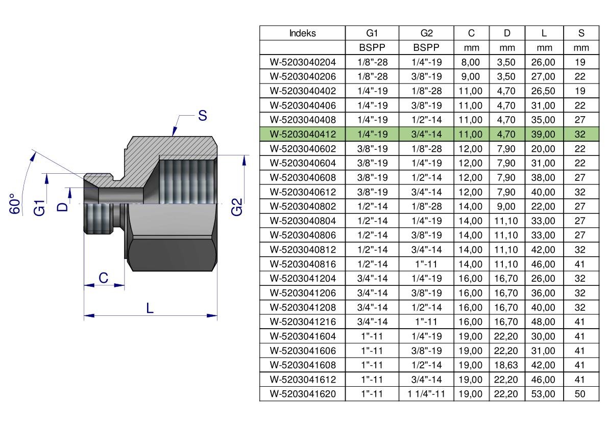 Tulejka różnicowa hydrauliczna calowa AB 1/4″GZ x 3/4″GW BSP Waryński. Elementy złączne zostały zaprojektowane i wykonane zgodnie z obowiązującymi normami, które szczegółowo opisują wymagania jakościowe i wymiarowe. Są kompatybilne z elementami złącznymi innych renomowach producentów hydrauliki siłowej.
