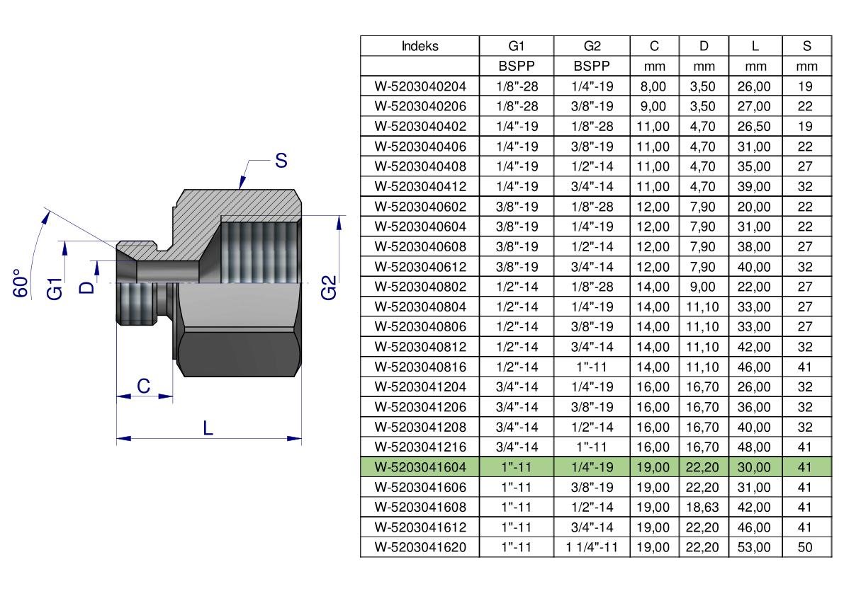 Tulejka różnicowa hydrauliczna calowa AB 1″GZ x 1/4″GW BSP Waryński. Elementy złączne zostały zaprojektowane i wykonane zgodnie z obowiązującymi normami, które szczegółowo opisują wymagania jakościowe i wymiarowe. Są kompatybilne z elementami złącznymi innych renomowach producentów hydrauliki siłowej.