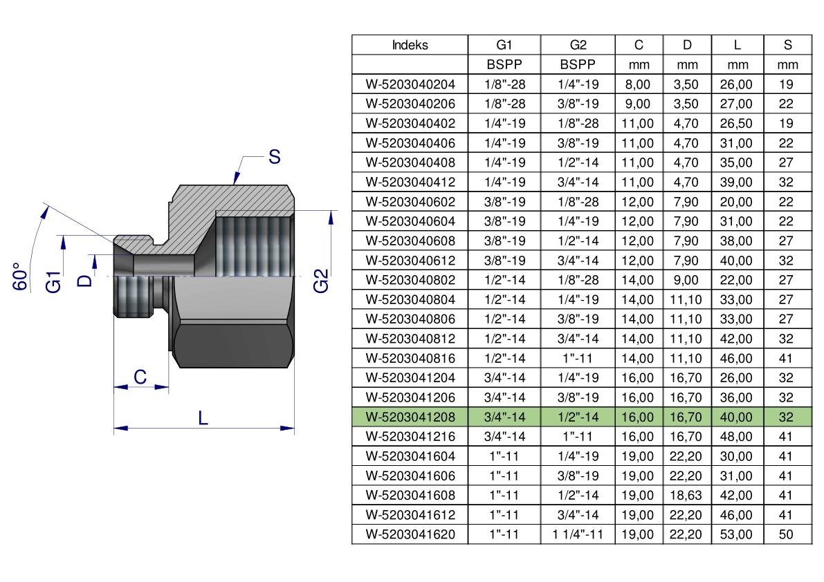 Tulejka różnicowa hydrauliczna calowa AB 3/4″GZ x 1/2″GW BSP Waryński. Elementy złączne zostały zaprojektowane i wykonane zgodnie z obowiązującymi normami, które szczegółowo opisują wymagania jakościowe i wymiarowe. Są kompatybilne z elementami złącznymi innych renomowach producentów hydrauliki siłowej.