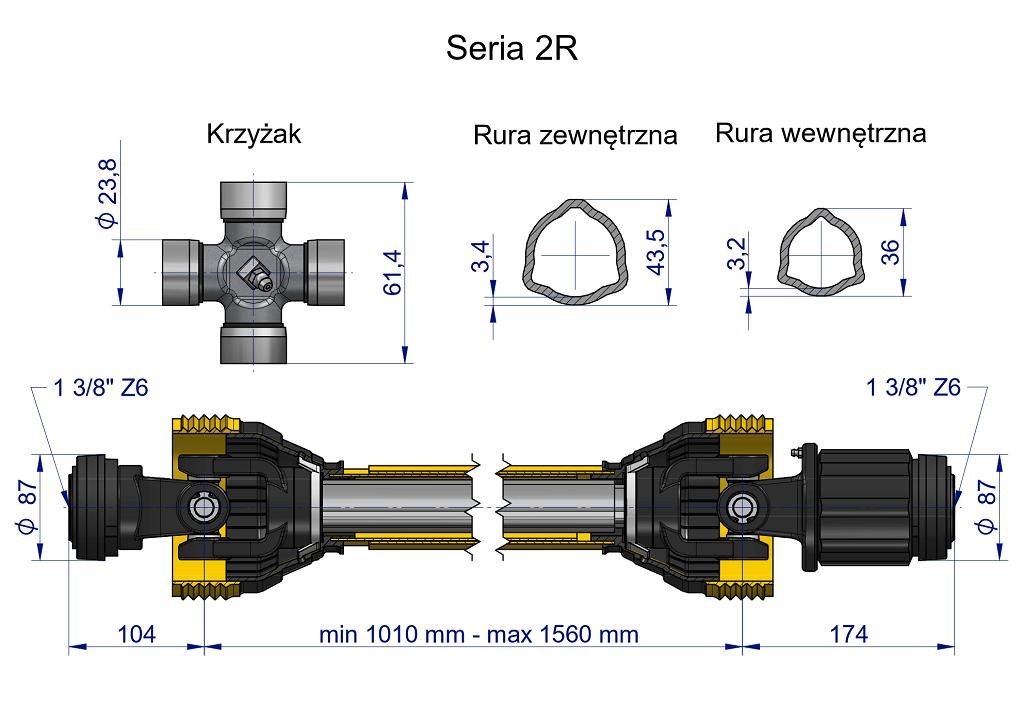 Wał przegubowo-teleskopowy 1010-1560mm 270Nm sprzęgło zapadkowe CE 2020 seria 2R WARYŃSKI [W2B1381010]
