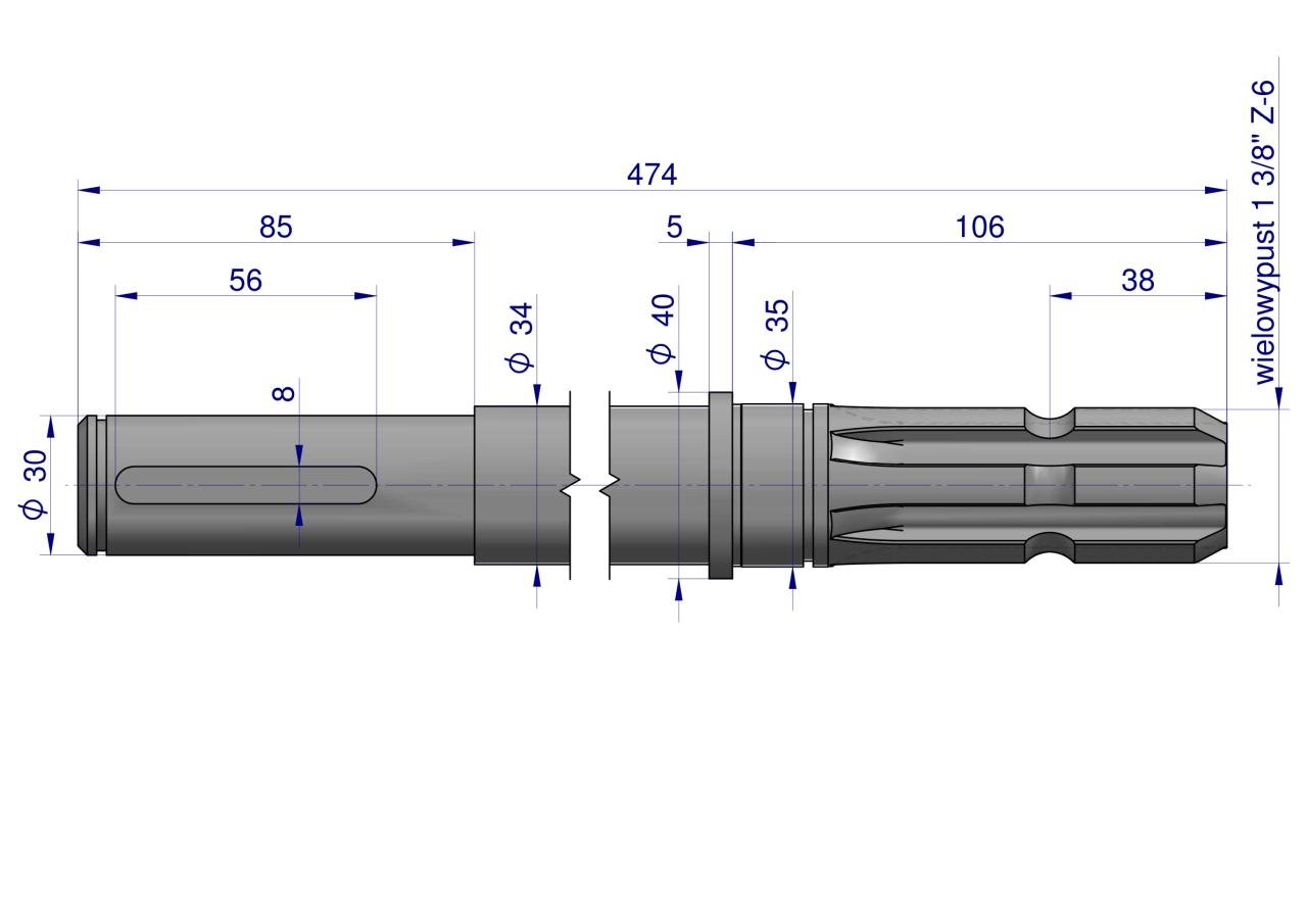 Wałek główny głowicy zastosowanie Kosiarka rotacyjna polska Waryński [W-5036020600]