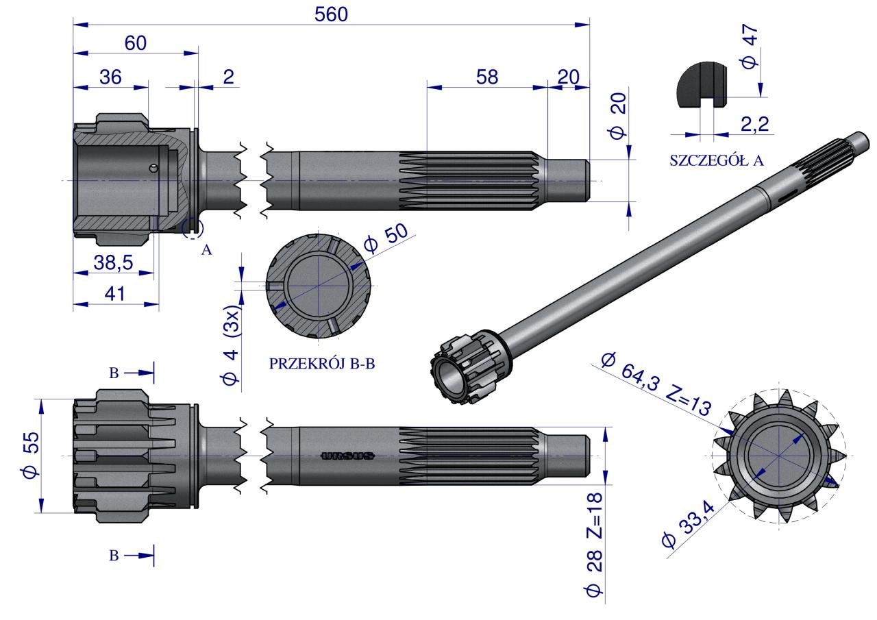 Wałek sprzęgłowy I stopnia (nowy typ) C-360 ORYGINAŁ URSUS
