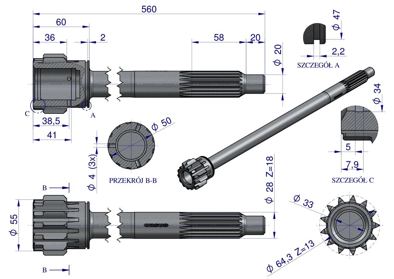 Wałek sprzęgłowy I stopnia (stary typ – z rowkiem) C-360 ORYGINAŁ URSUS