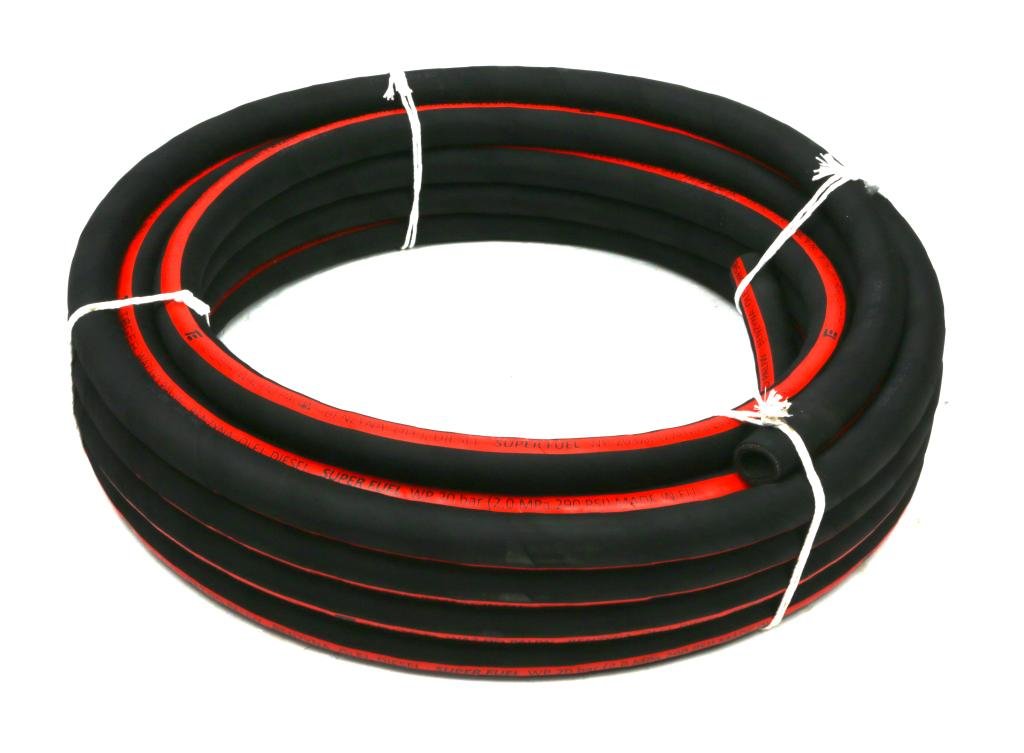 Wąż do paliw SUPER FUEL – Benzyna, Olej, Diesel – DN25 – 20 bar / 2,0 Mpa TEGER. Wysokiej jakości mieszanka gumowa NBR odporna na działanie olejów i paliw. Antyelektrostatyczna guma barwy czarnej z kauczuku syntetycznego, odporna również na na ścieranie oraz działanie warunków atmosferycznych i ozonu. Dodatkowo wąż spełnia wymagania normy EN 1360 pod względem odporności chemicznej.