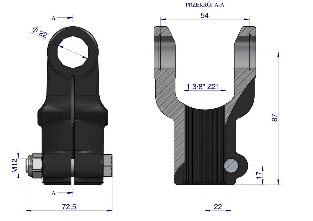 Napisz pierwszą opinię o „Widłak wału skręcany na śrubę 1 3/8 Z21 – 22X54 Seria 1R Waryński [WR217112]”