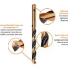 Wiertło do metalu HSS PRO (DIN 338) marki TEGER specjalistyczne wiertło zapewniające długotrwałą pracę dzięki wzmocnionemu rdzeniowi, wykonane ze stali szybkotnącej (HSS) zgodnie z normą DIN 338. Służące do wysokowydajnej obróbki skrawaniem, przeznaczone do wiercenia otworów w stali, metalach kolorowych, tworzywach sztucznych. Konstrukcja wiertła sprawia, że jest ono odporne na siły kinetyczne występujące podczas wiercenia otworów w stopach lekko utwardzanych. Precyzyjne krawędzie tnące oraz zastosowany kąt wierzchołkowy 135° zapewniają doskonałą jakość wykonywanych otworów oraz szybkie i precyzyjne wiercenie.