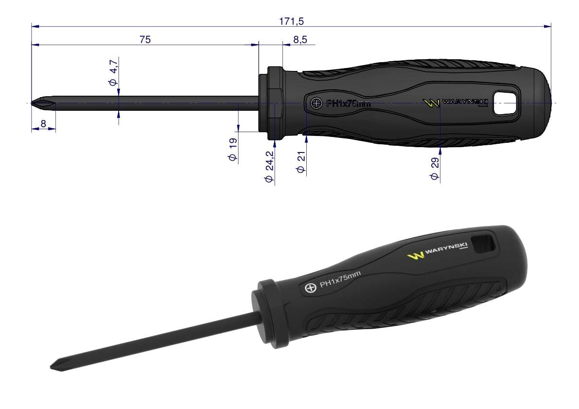 Wkrętak PH1 x 75 mm. stal SVCM. Waryński