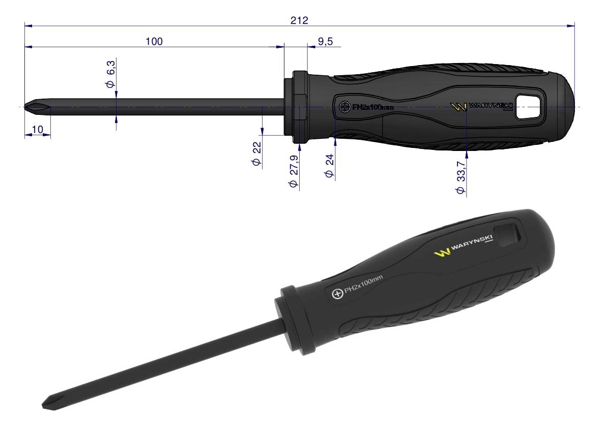 Wkrętak PH2 x 100 mm. stal SVCM. Waryński