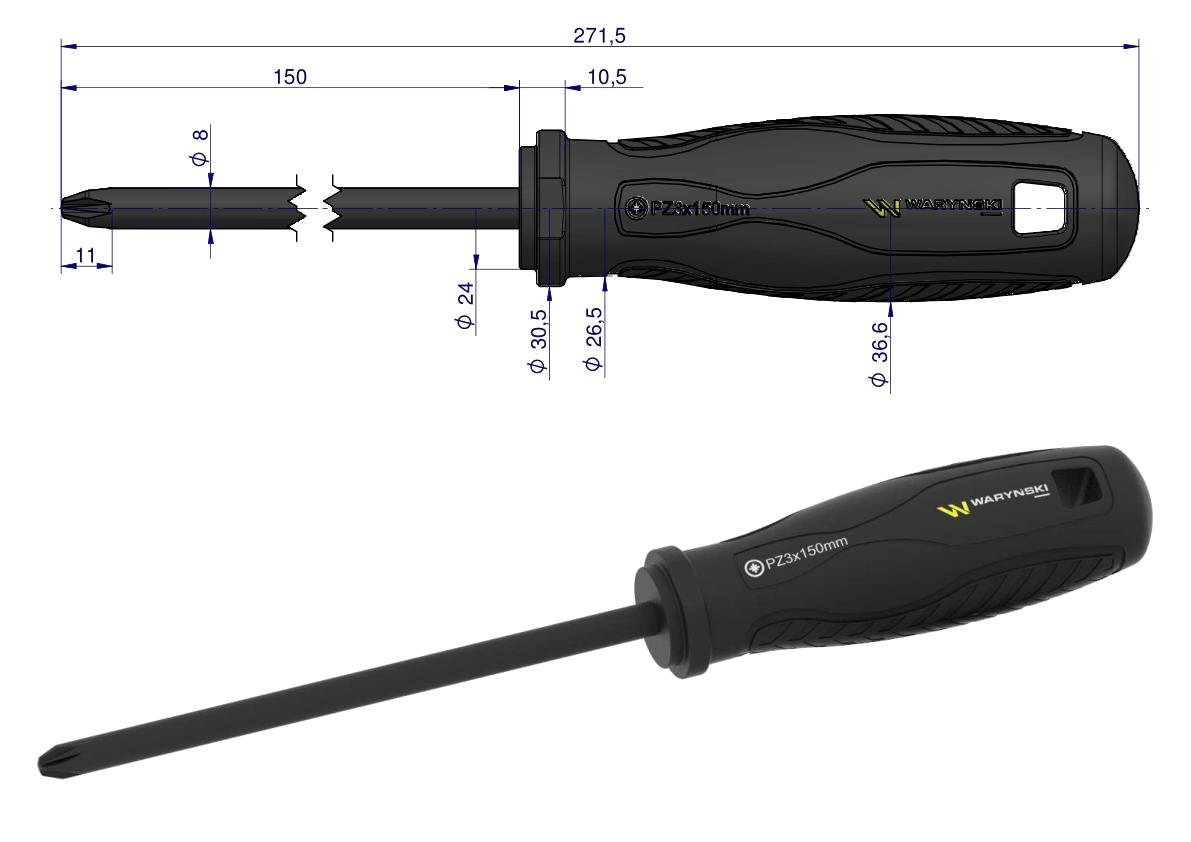 Napisz pierwszą opinię o „Wkrętak PZ3. 150 mm. stal SVCM. Waryński [WMW053]”