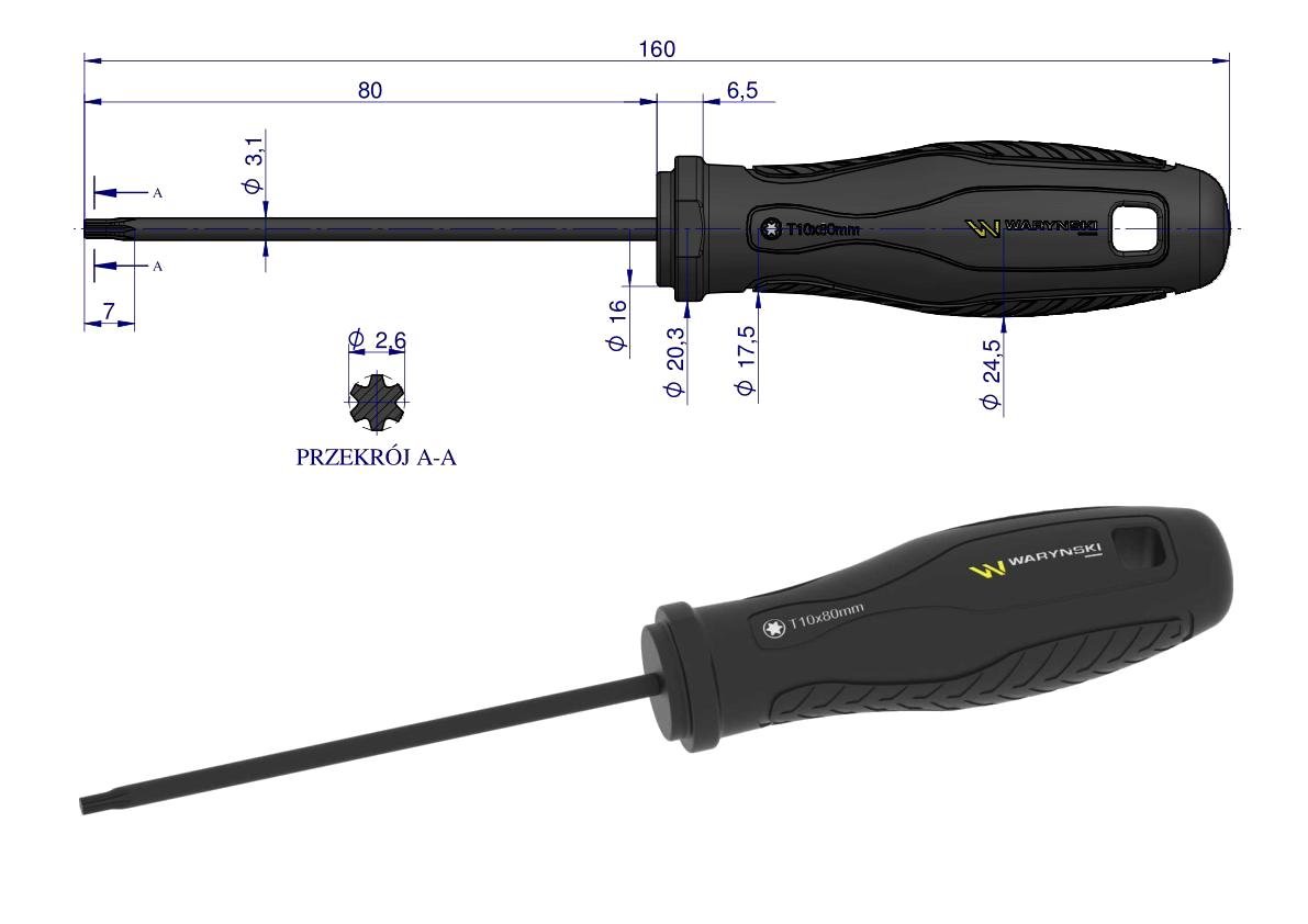 Wkrętak T10 x 80 mm. stal SVCM. Waryński