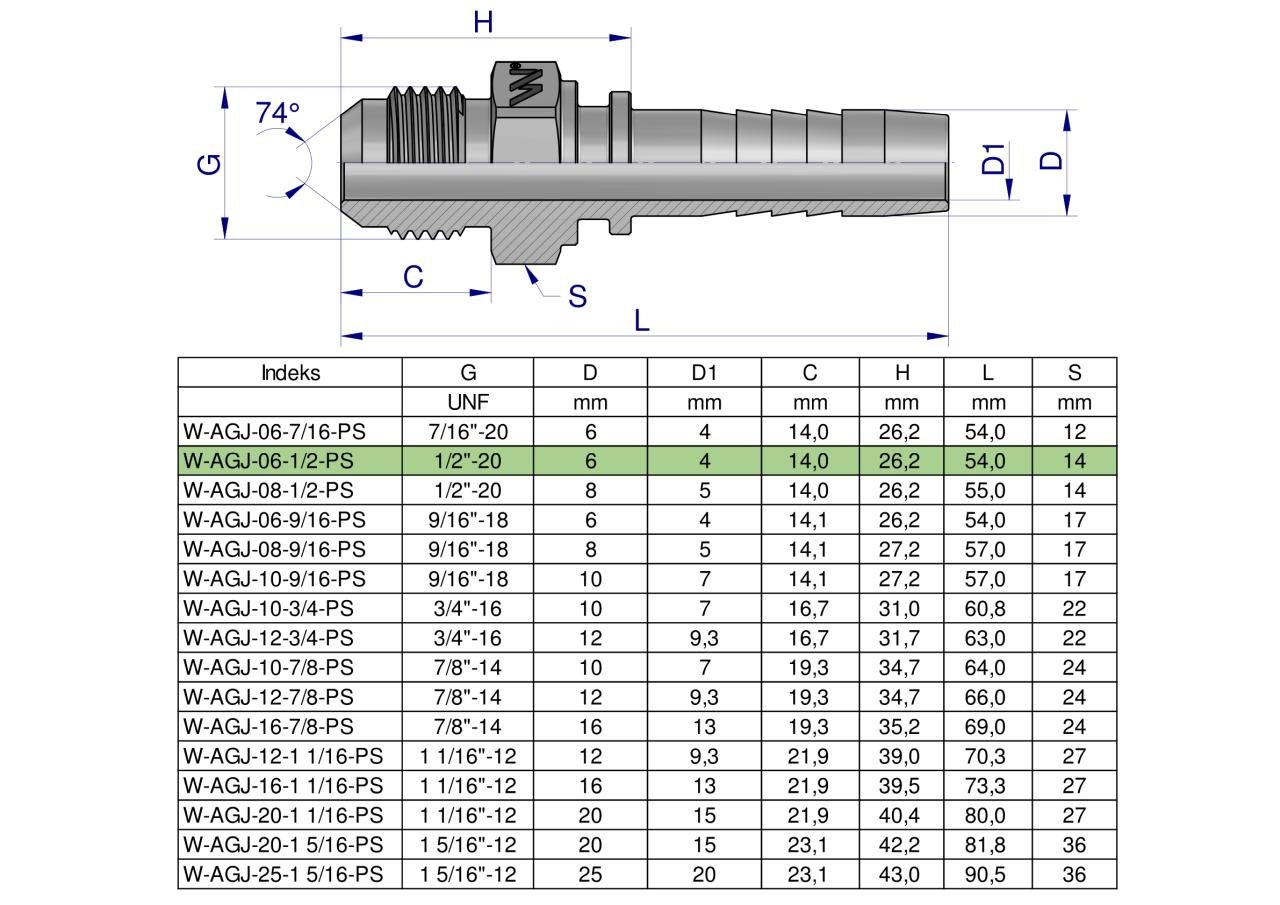 Zakucie hydrauliczne AGJ DN06 1/2″-20 UNF PREMIUM Waryński ( sprzedawane po 10 ) [W-AGJ-06-1/2-PS]