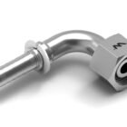 Zakucie hydrauliczne PREMIUM Waryński serii DKOS kątowe 90 stopni (odmiana ciężka) ze stożkiem 24 stopnie, pierścieniem uszczelniającym i z gwintem wewnętrznym metrycznym.