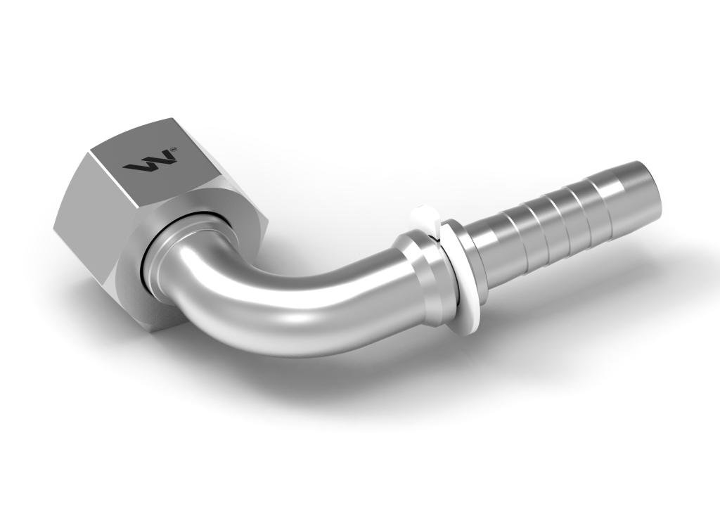 Zakucie hydrauliczne PREMIUM Waryński serii DKOS kątowe 90 stopni (odmiana ciężka) ze stożkiem 24 stopnie, pierścieniem uszczelniającym i z gwintem wewnętrznym metrycznym.