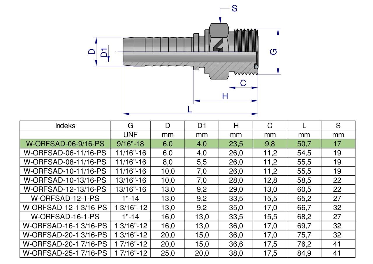 Zakucie hydrauliczne ORFSAD DN06 9/16″-18 PREMIUM Waryński ( sprzedawane po 5 ) [W-ORFSAD-06-9/16-PS]