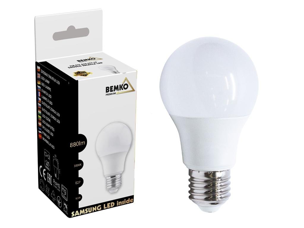 Żarówka LED (SAMSUNG LED) 230V E27 A60 9.5W 880LM 3000K barwa ciepła (sprzedawane po 10) [ZARLED9-5W3K]