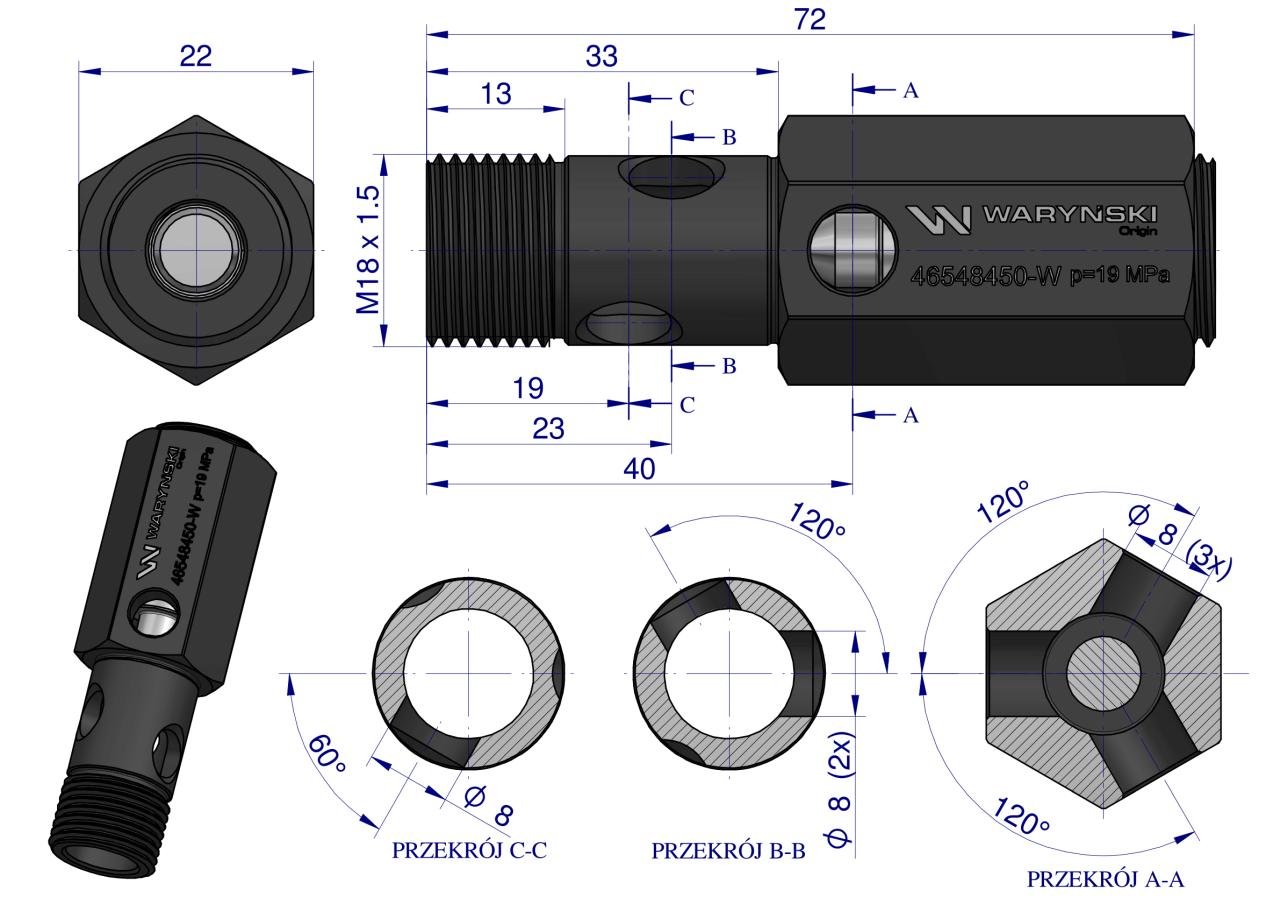 Zawór bezpieczeństwa cylindra hydraulicznego do C-360 WARYŃSKI to gwarantowana niezawodna jakość produktu.Jest to ważny element wchodzący w skład układu hydraulicznego podnośnika ,posiada 24 miesięczną gwarancję i trwałe oznaczenie marki .