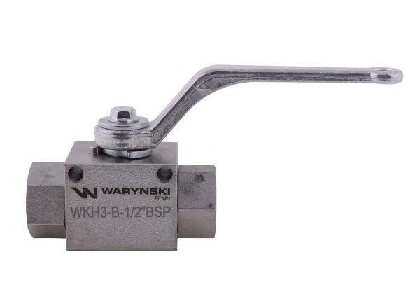 Zawór kulowy hydrauliczny 3-drogowy 3/2 – 1/2″BSP z otworami mocującymi 500 bar Waryński [WKH3-B-1/2BSP]