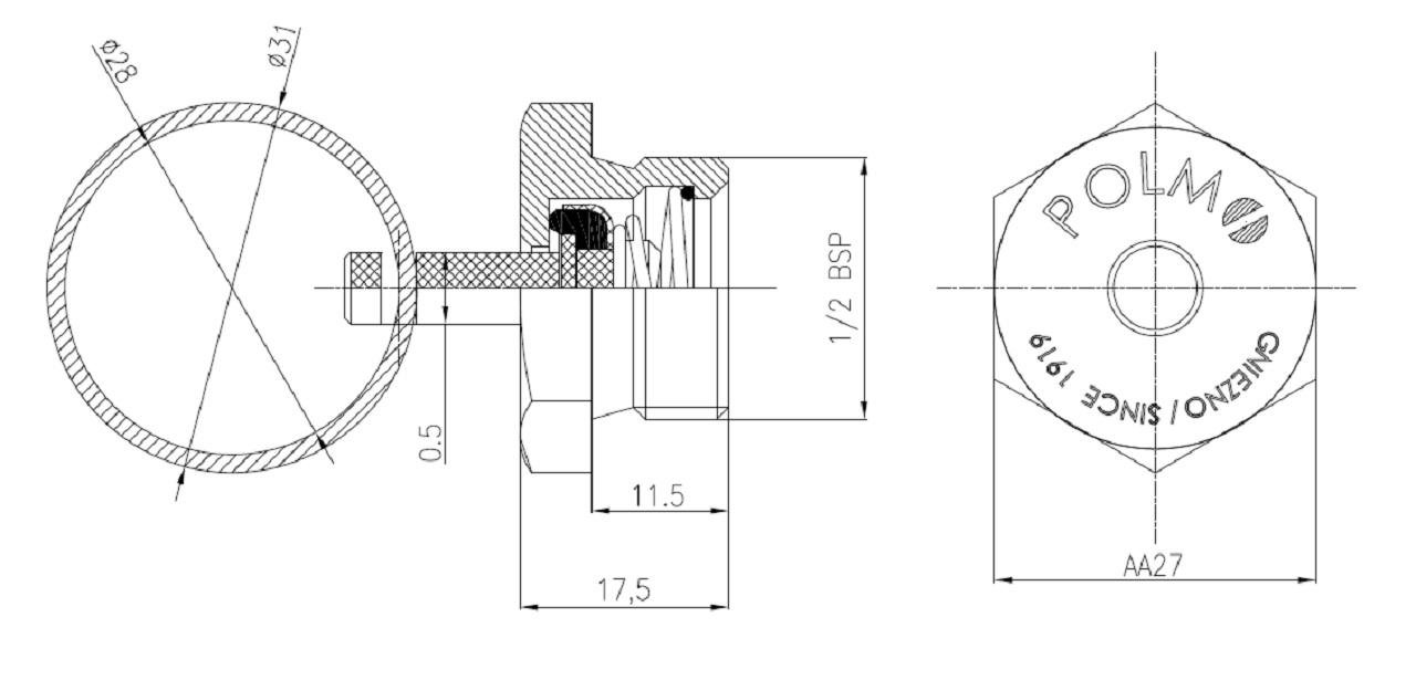 Zawór odwadniający zbiornika powietrza 1/2 BSP 1664505MP ( sprzedawane po 5 ) POLMO [16645055MP]