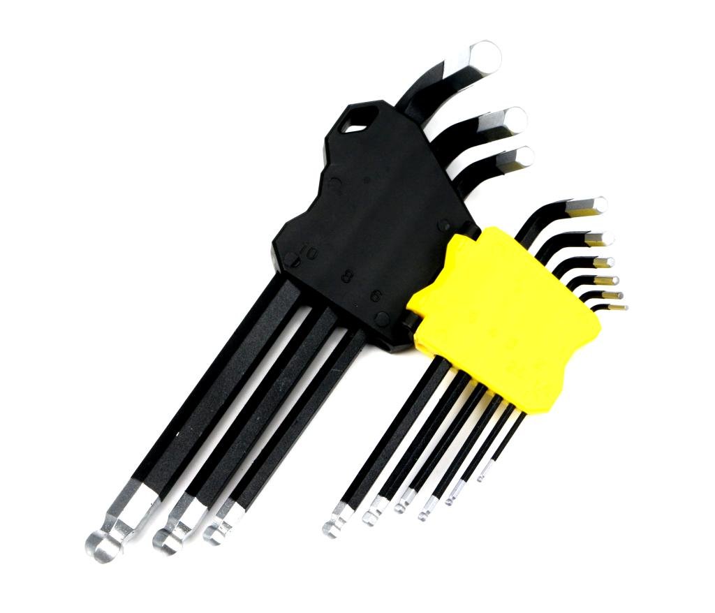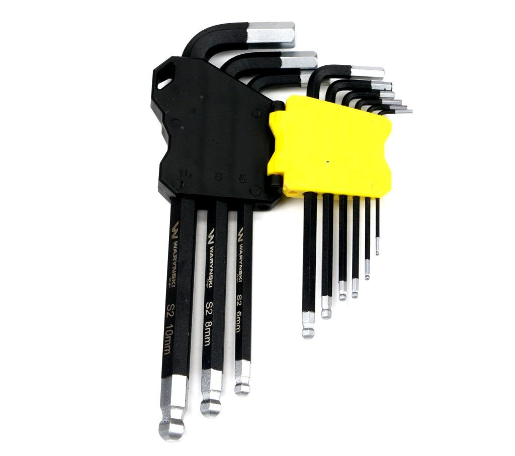 Zestaw kluczy przedłużonych HEX 1.5-10 ze stali S2 odpornej na skręcanie 9 rozmiarów w uchwycie Waryński