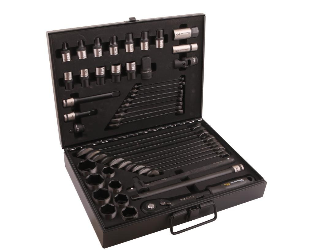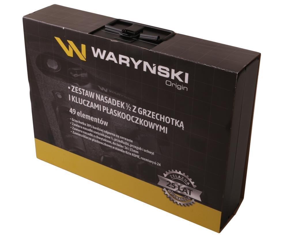 Zestaw nasadek 1./2 z grzechotką i kluczami w kasecie metalowej 49 elementów Waryński