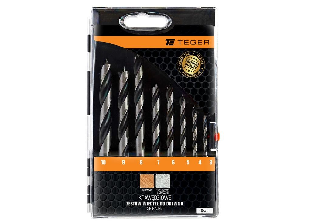 Zestaw wierteł do drewna – krawędziowe spiralne (8 SZT.) / TEGER [T-W-NWWDD-KPL01]