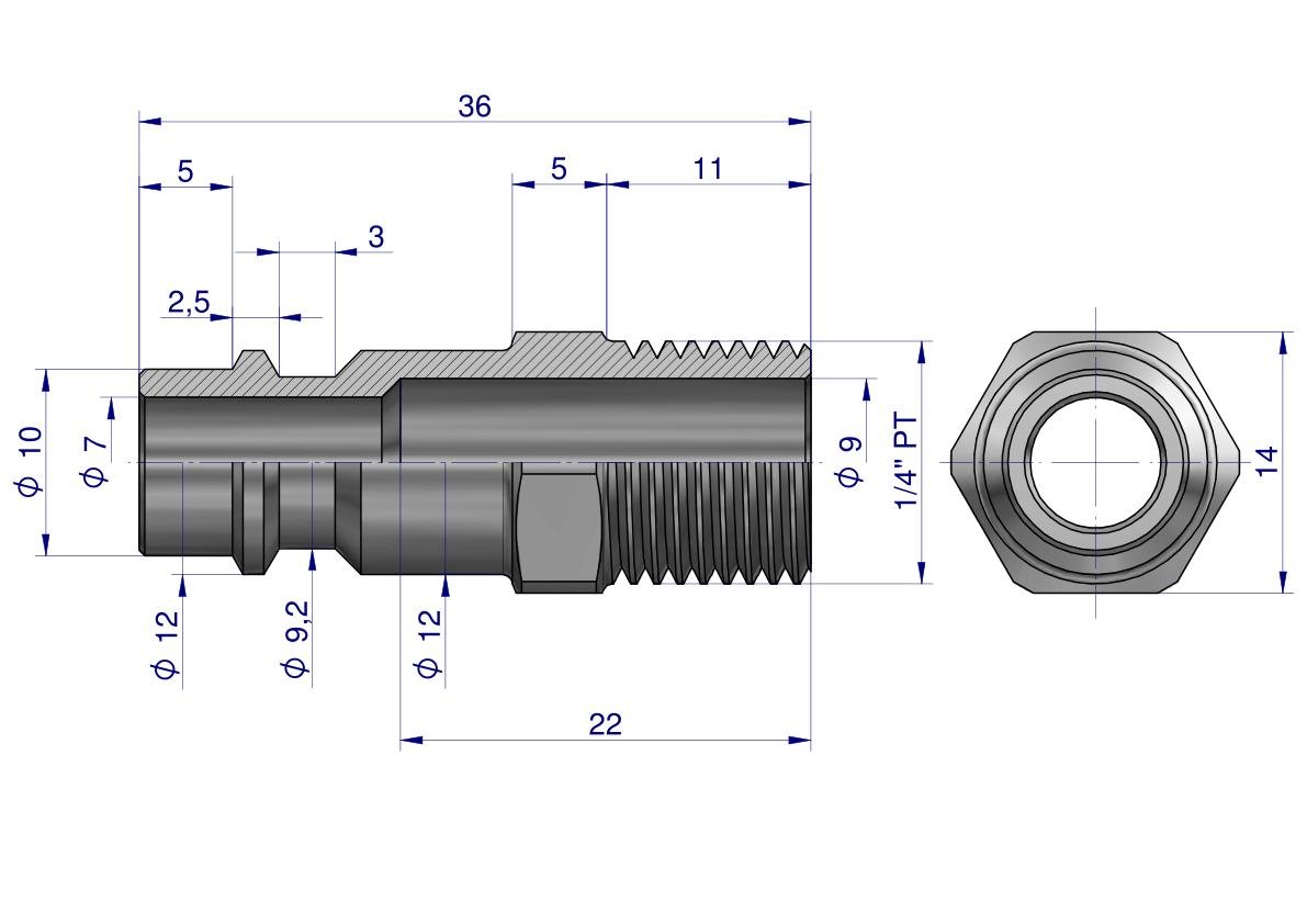 Złączka do narzędzi pneumatycznych gwint 1/4 PT 2 szt w komplecie Waryński